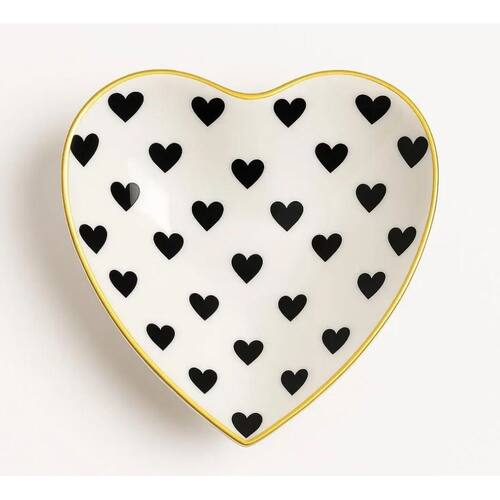 Conjunto de 2 Tigelas de Vidro em Formato de Coração - Branco e Preto - 18cm
