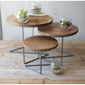 Kalalou Peças de elevação redondas de madeira, conjunto de 3, tamanho único, marrom, 3 unidades