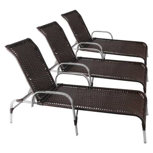 ESPECIFICAÇÕES TÉCNICAS: -Material da Estrutura: Alumínio Polido; -Material do Assento: Fibra sintética -vime/junco-; -Material do Encosto: Fibra sintética -vime/junco-; -Acabamento: Proteção UV; -Quantidade de Lugar: 1 Lugar; -Quantidade de Espreguiçadeira: 3 Espreguiçadeiras; -Possui Regulagem de Enconsto? Sim, 5 Níveis; -Dobravel? Não; -Garantia: 3 Meses; -Necessita de Montagem: Não; -Instruções de Cuidado: Não utilizar produtos químicos na fibra e nem na estrutura para limpeza, somente pano macio umedecido com água e sabão neutro; -Dimensões do Produto -LarguraXProfundidadeXAltura-: 63x189x92cm; -Conteúdo da Embalagem: 3 Espreguiçadeiras. Marca: Acesse Móveis Ean: 7898704741502