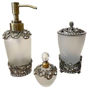 Adquira agora o Conjunto de 3 Peças de Cristal para Banheiro e transforme o seu banheiro em um refúgio de elegância e luxo. Desfrute de cada momento de cuidado pessoal com estas peças deslumbrantes.