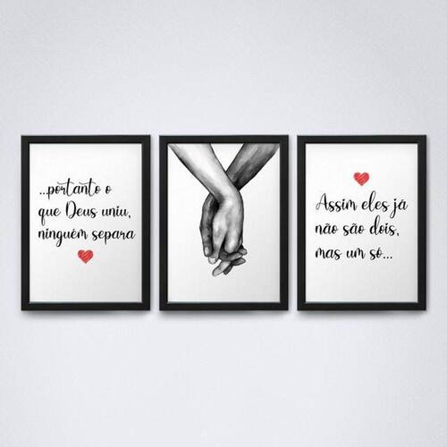 Decore sua casa com elegância com o Quadro Com Moldura O Que Deus Uniu Nínguem Separa. Este conjunto de 3 quadros é perfeito para adicionar um toque especial à sua decoração. Cada quadro possui o tamanho de 30x20cm, ideal para encaixar em diversos espaços da sua casa.