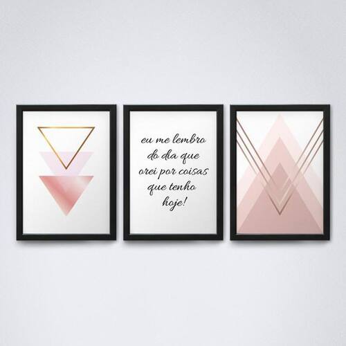 Principais características: - Conjunto com três quadros de tamanho 30x20cm cada. - Moldura preta feita com madeira de reflorestamento. - Acabamento impecável. - Design cuidadosamente elaborado. - Não possui vidro.