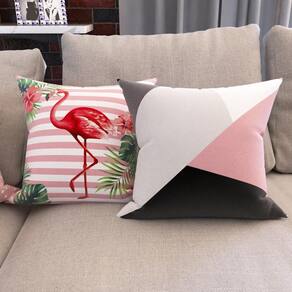Conjunto de 4 Almofadas Decorativas Rosa, Preto Flamingos e Geométricas Para Quarto 40x40 - Novadecora Decorar sua casa com lindas Almofadas é aliar conforto e personalidade. E não existe sensação melhor do que poder chegar em casa depois de um dia cansativo de trabalho e curtir o aconchego do nosso lar. E por falar em aconchego, um item que transmite muito bem isso são as Almofadas Decorativas que você encontra na Novadecora. Se você é daqueles que adora decoração e gosta de deixar a sua casa com a sua personalidade, aqui na Novadecora é o lugar ideal para encontrar as almofadas mais lindas, dos mais variados estilos. Kit Com 4 Almofadas Decorativas em impressão digital com estampa exclusiva frente e verso TECIDO Capa confeccionada em tecido Oxford 100% poliéster, um tecido de ótima qualidade e durabilidade. O Oxford proporciona mais conforto e um toque agradável, além das cores ficarem mais vivas deixando seu ambiente mais decorado. Características e especificações: Marca: Novadecora Almofada já cheia Pronta para uso Almofada lavável - sem perder a qualidade e impressão Zíper invisível Dimensões lxa 40x40 cm É produto personalizado: Sim Conteúdo da embalagem 4 almofadas com enchimentos Importante sobre lavagem: - Lavar manualmente com sabão neutro - Temperatura máxima de lavagem 40°C. - Não usar alvejante. - Secar a sombra. - Temperatura máxima de base do ferro 110°C. - Não limpar a seco. : Três meses contra defeitos de fabricação. As cores das estampas podem variar de acordo com a calibração do seu monitor. AVISO: Não nos responsabilizaremos pela diferença de cores em caso de pedidos feitos separadamente, no caso produzidos em lotes diferentes. Marca: Novadecora Ean: 6015246341309