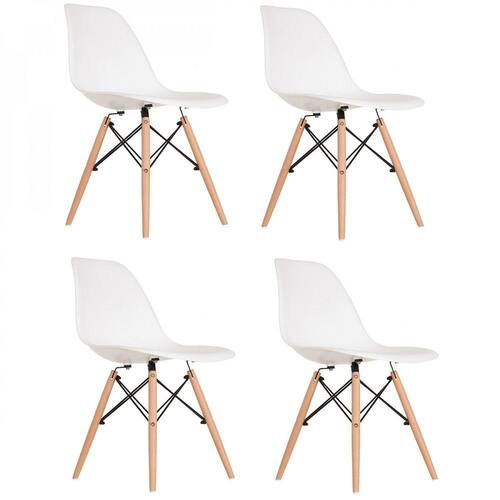 Conjunto de 4 Cadeiras Pp Base Madeira Eames Dsw-m Branco