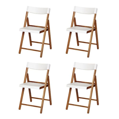 Madeira Itaúba Acabamento natural Lixado Assento e encosto em Polipropileno na cor Branco Dobrável Entregue Montada Suporta até 110 kilos