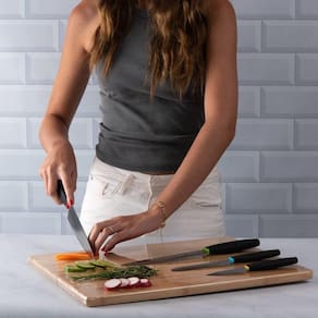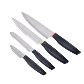 Conjunto De 4 Facas Kitchen Em Aço Inox Kenya Conheça as Facas Profissionais da Kenya, e tenha na sua cozinha maior variedade de facas para executar as melhores incisões e preparos. Com cortes precisos e cabo confortável essas facas proporcionarão facilidade e praticidade no preparo das suas refeições.As facas premium de cozinha são ferramentas essenciais para qualquer chef ou entusiasta da culinária que busca qualidade e precisão em seus preparos. Com lâminas afiadas e resistentes, essas facas foram projetadas para cortar, picar e fatiar com facilidade e eficiência.Especificações do Produto: - Facas com lâminas precisas, fabricadas em aço inoxidável, ideais para o dia a dia- Conjunto de facas para cortar todos os tipos de carnes, pães, frutas, legumes e muito mais- Design moderno com coloração em cada modelo de faca- Garante resultados impecáveis em suas receitasConteúdo da Embalagem: - 1 Faca de Legumes de 8cm- 1 Faca de Vegetais 14cm- 1 Faca para Descascar 20cm- 1 Faca do Chef de 20cmFicha Técnica: - Código: 4081660114- Marca: Kenya- Material: Aço Inox e Polipropileno- Cor: Inox e Preto- Peso: 374g- Dimensões: 50m x 28cm x 3,5cm (AxLxP)- Garantia: 3 Meses (Contra defeito de fabricação) Altura - 50cm Largura - 28cm Profundidade - 3,5cm Peso - 374g Sobre a Marca - A marca brasileira Kenya oferece produtos com ótima relação custo-benefício para os principais ambientes da casa, com seu portfólio dividido em Mesa, Vinho e Bar. Simplicidade e elegância são características fundamentais da marca, que traz em cada coleção de produtos para cozinha, banheiro, lavanderia, organização, entre outros, as novidades alinhadas com as últimas tendências do mercado internacional.
