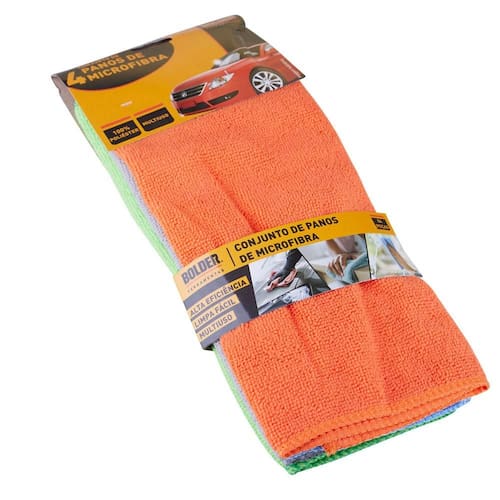 Tenha auxílio na sua limpeza em geral com o Conjunto de Panos Microfibra Bolder. Com esse conjunto de 4 panos coloridos, você pode efetuar sua limpeza em geral no seu veiculo em seu material de microfibra com muita facilidade e praticidade.