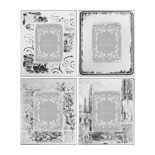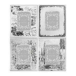 Molduras fotográficas modernas de madeira gravada Benjara, grandes, conjunto de 4, prateadas, 4 unidades