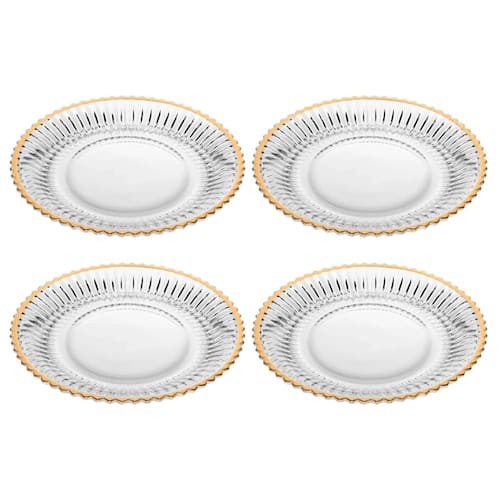 Conjunto de 4 Pratos de Sobremesa Imperatriz de Cristal com Fio de Ouro 20cm - Wolff
