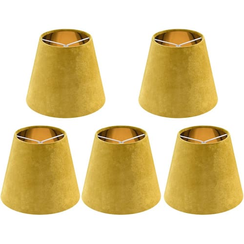 O delicado mini clipe no abajur criará iluminação difusa decorativa para criar uma atmosfera natural, suave e convidativa em seu quarto. Os pequenos abajures com clipe criam o ambiente certo no seu quarto, eles vão enfeitar seus candeeiros antigos e criar uma atmosfera romântica e calorosa para você. Os pequenos abajures com clipe são fáceis de combinar com seus móveis, e esta peça pode ser facilmente adicionada a uma variedade de cômodos. Este abajur com clipe vem em um conjunto de 5 e pode ser alterado para qualquer tipo de lustre, parede ou candeeiro de mesa. Especialmente para famílias com crianças, muita luz brilhante pode causar danos aos olhos. Além disso, as lâmpadas equipadas com abajures certamente destacarão o gosto sofisticado e elegante. - ?Tamanho pequeno das persianas? 10 cm superior x 15 cm inferior x 12,7 cm de altura, mini abajur, conjunto de 5 peças em uma caixa. Adequado para a maioria das luminárias. Observação: Lâmpada padrão de encaixe nos abajures -- Antes de comprar, verifique se o tamanho da lâmpada que você está usando está dentro dos nossos limites de abajur. - ?Instalação em um passo?A parte superior deste abajur pequeno é equipada com um encaixe de encaixe, projetado para prender diretamente em um candelabro ou lâmpada estilo chama para instalação sem esforço. (Lâmpada não incluída) - ?Material premium?Abajur amarelo areia, abajur de tecido de veludo, forrado com ouro, feito à mão para ser preso diretamente nas lâmpadas E12. O abajur pendente é elegantemente decorativo com luzes ligadas ou desligadas. - ?Abajur multifuncional?Este conjunto de 5 lustres é adequado para lustres, luminárias de mesa e luzes de parede, oferecendo uma variedade de opções de decoração de iluminação para sua casa. Se você precisa adicionar luz à sua sala de estar, quarto ou escritório, este abajur moderno tem tudo. - ?Suporte pós-venda?Se você encontrar algum problema durante o uso e não estiver satisfeito com nosso abajur de veludo ou serviços, por e-mail o mais rápido possível e faremos o nosso melhor para fornecer serviços satisfatórios.