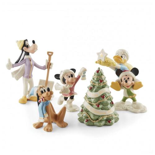 Decore sua casa com a magia da Disney neste encantador conjunto de 5 figuras decorativas Lenox Winter Fun. Produzidas em porcelana de alta qualidade com detalhes em ouro 24K, as peças retratam os personagens clássicos Mickey & Minnie Mouse, Pato Donald, Pateta e Pluto reunidos ao redor de uma árvore de Natal. Ideal para uso decorativo em ocasiões festivas, especialmente para o Natal, este conjunto traz um toque nostálgico e divertido, tornando cada celebração mais especial. Importado e com acabamento pintado à mão, é uma peça que certamente encantará colecionadores e fãs da Disney.