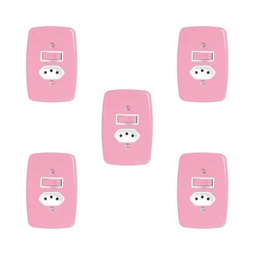 Com design sofisticado esse conjunto é utilizado para o acionamento manual da iluminação (liga/desliga) e permite a conexão dos aparelhos e dispositivos à rede elétrica em diversos ambientes residenciais, comerciais ou industriais. Nossas placas e teclas são produzidos em ABS e com tratamento anti-UV garantindo a cor e o brilho por muito mais tempo Altura do Conjunto: 18 cm Ambiente: null Ambiente Principal: Sala de Estar Cor: Rosa Cor Predominante: Rosa Garantia do Fornecedor: 5 anos Informação Complementar: 5x Interruptor de 1 Tecla Simples e Tomada 2p+t 20A , com Placa 4x2 Rosa Largura: 12 cm Altura: 18 cm Peso: 0,062 g