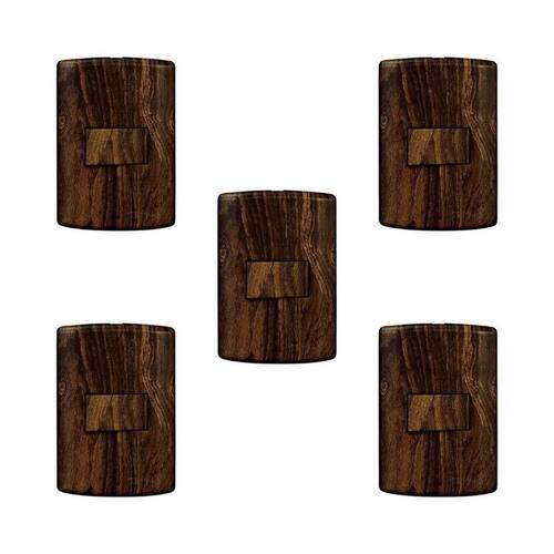 Com design sofisticado esse conjunto é utilizado para o acionamento manual da iluminação (liga/desliga) em diversos ambientes residenciais, comerciais ou industriais. As placas e teclas são produzidos em ABS e com tratamento anti-UV garantindo a cor e o brilho por muito mais tempo. Altura do Conjunto: 12.5 cm Ambiente: null Ambiente Principal: Sala de Estar Cor: Marrom Cor Predominante: Marrom Garantia do Fornecedor: 5 anos Informação Complementar: 5x Interruptor de 1 Tecla Simples, Modular, com Placa 4x2 e Suporte Madeirado Imbuia Largura: 8.5 Altura: 12.5 Peso: 0.058