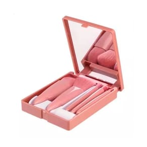 Conjunto de 5 pincéis de maquiagem profissionais com estojo espelhado\ NMaterial de alta qualidade: cabelo sintético macio de alta qualidade, pode proporcionar uma maquiagem perfeita e perfeita. A alça é feita de plástico durável. Multiuso e fácil de transportar: 1 conjunto inclui 5 pincéis. Ele pode atender às suas necessidades de sombra, poeira, blush e maquiagem para sobrancelhas. Ele permite que você obtenha uma aplicação de maquiagem impecável e com aparência profissional. Com a tampa do espelho unida, você pode manter sua escova segura e confortável de usar ao viajar. Seguro e ecológico: 100% livre de crueldade contra animais e veganos.