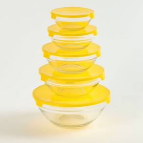 Conteudo da Embalagem: 01 Conjunto de 5 Tigelas de Vidro La Vittra com Tampa Plastica Intervalue