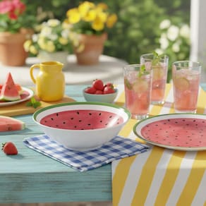 Cheia de vida, frescor e personalidade, a Linha Melancia de cerâmica Alleanza é a escolha ideal para quem ama mesas coloridas e cheias de estilo.