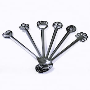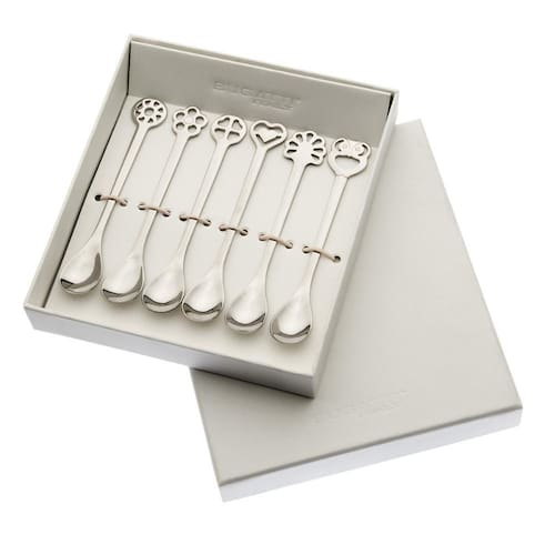 Este conjunto de 6 colherzinhas de café e chá, tem no topo de cada uma delas, um símbolo diferente que representa SORTE.