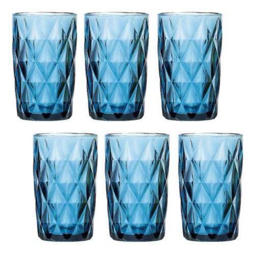 Material: Vidro. Capacidade: 350ml. Medida: 12x8cm. Conteúdo: 6 Copos de Vidro Diamond Para Agua e Sucos. Cores: Rosa, Azul e Verde. Ean: 7908630218440