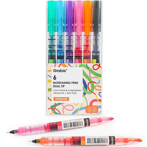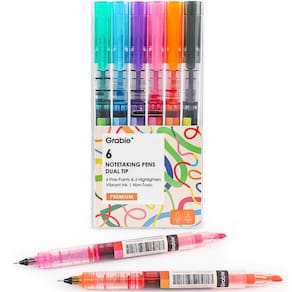 Melhore suas anotações com nosso conjunto de seis canetas vibrantes de ponta dupla, criadas para misturar estilo e versatilidade. Com uma ponta de destaque para marcar pontos-chave e uma ponta de escrita precisa para notas detalhadas, estas canetas vêm com um cilindro transparente para facilitar o monitoramento do nível de tinta. Dê um toque de cor à sua rotina enquanto se mantém organizado sem esforço! - Melhore suas anotações com nosso conjunto de seis canetas vibrantes de ponta dupla, criadas para misturar estilo e versatilidade. Com uma ponta de destaque para marcar pontos-chave e uma ponta de escrita precisa para notas detalhadas, estas canetas vêm com um cilindro transparente para facilitar o monitoramento do nível de tinta. Dê um toque de cor à sua rotina enquanto se mantém organizado sem esforço! - Design de ponta dupla para versatilidade – cada caneta possui uma ponta de cinzel de 3,5 mm para destaques ousados e uma ponta de agulha de 0,5 mm para escrita ou esboço detalhados. O cilindro transparente ajuda você a rastrear os níveis de tinta, e a tinta da ponta ousada não obscurece a escrita da ponta fina. É a ferramenta perfeita para notas claras e vibrantes. - Controle de cor sem esforço – preenchidas com tinta brilhante à base de água, estas canetas secam rapidamente sem manchas. A tinta não sangra quando molhada, mantendo seu trabalho limpo e limpo. Não tóxico e seguro, eles trazem cores ousadas para qualquer projeto com facilidade. - Perfeita para qualquer tarefa – de notas de aula a diários criativos, estas canetas lidam com tudo. Destaque passagens, organize sua agenda ou adicione toques vibrantes ao seu álbum de recortes. Ideal para estudantes, artistas e qualquer pessoa que ame escrita colorida e organizada!