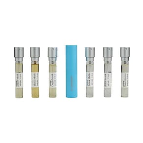 Possui 6 mini sprays EDP com perfis de almíscar exclusivos —