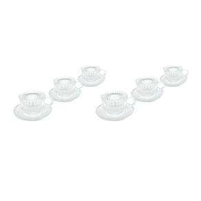 6 xícaras e 6 pires de vidro