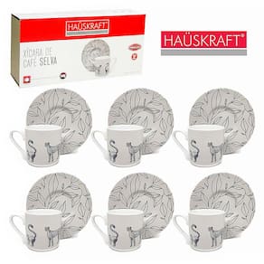 1 Conjunto de 6 Xícaras de Café e 6 Pires Linha Selva 80ml JGXC063 - Hauskraft