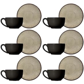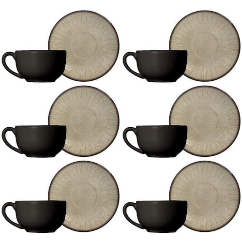 Conjunto de 6 Xícaras de Chá com Pires de Cerâmica Mônaco 250ml - Alleanza