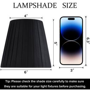 1 - ?Abajur para candelabro? Diâmetro superior de 10 cm, diâmetro inferior de 15 cm e 12,7 cm de altura, mini abajur tradicional de candelabro, barril pequeno, conjunto de 5 peças de persianas pretas de encaixe em uma caixa. - ?Abajur de encaixe?Aplicável apenas a lâmpadas de vela. Não é adequado para lâmpadas esféricas, lâmpadas redondas, lâmpadas espirais, lâmpadas de haste, etc. Reveja cuidadosamente as imagens do produto, caso contrário a instalação não será possível. - ?Design profissional?Cortinas de lustre projetadas por nossos designers profissionais. Com sua simplicidade, bom material de linho, o abajur de tira de persiana preta é feito à mão e é perfeito para lustres tradicionais. - ?Suporte pós-venda?Garantia de 12 meses em todas as partes deste acessório de voo. Se houver peças quebradas após o transporte de longa distância, e ajudaremos você a resolver o problema o mais rápido possível. - Observação: pense cuidadosamente antes de comprar para garantir que os abajures de tecido sejam adequados para sua luminária.