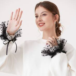 Conjunto feminino de manga para mãos e pés em malha de renda preta, luvas de renda removíveis e mangas no tornozelo, acessório de alto desempenho, decoração elegante de gola de meia camisa para festas e eventos Material: Outro tamanho: 15 × 20 × 1 cm Peso: 100 g