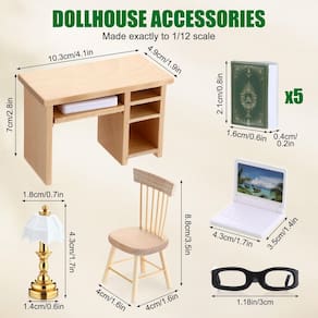 Características: Diversão interativa para a família: Nosso conjunto de móveis em miniatura para casa de bonecas oferece mais do que apenas diversão. É uma oportunidade para pais e crianças se unirem e decorarem a casa de bonecas, promovendo laços e criando momentos íntimos em família. Os melhores acessórios: Cada um dos nossos acessórios para casa de bonecas é elegantemente colorido. Suas persianas são cuidadosamente escolhidas para melhorar o apelo estético da coleção de móveis em miniatura da sua casa de bonecas. Decore sua mini mesa com a elegante luminária de mesa branca e amarela ou coloque nossos óculos pretos modernos no laptop para um toque detalhado. Especificações: Material: bétula principal, carvalho, plástico Cor: Óculos: preto Laptop: branco Lâmpada de mesa: branca, amarela Tamanho: Mesa: cerca de 4,1 x 1,9 x 2,8 polegadas/10,3 x 4,9 x 7 cm Cadeira: cerca de 1,6 x 1,6 x 3,5 polegadas/4 x 4 x 8,8 cm Livros: cerca de 0,6 x 0,8 x 0,2 polegadas/1,6 x 2,1 x 0,4 cm Óculos: cerca de 1,18 polegadas/3 cm Laptop: cerca de 1,7 x 1,4 polegadas/4,3 x 3,5 cm Lâmpada de mesa: cerca de 18 mm A embalagem inclui: 1 mesa de casa de bonecas. 1 cadeira. 5 livros. 1 óculo. 1 computador falso. 1 luminária de mesa. Observações: Medição manual, permita pequenos erros no tamanho. A cor pode existir uma pequena diferença devido a diferentes exibições de tela. Adequado para pessoas com mais de 6 anos de idade, e é recomendado usar sob a supervisão de adultos em caso de risco de asfixia. - Acessórios de casa de bonecas em miniatura: nossos mini móveis para casa de bonecas incluem 10 elementos extraordinários, uma mesa, cadeira, 5 livros, um computador, óculos e uma luminária de mesa vintage; com esses móveis de mini casa de boneca, você pode criar um estilo moderno, sala de estudo clássica de casa de boneca, trazendo infinitas horas de brincadeiras imersivas - Qualidade confiável: estes acessórios de casa de bonecas em miniatura são feitos de materiais de qualidade, que são fortes e não são fáceis de quebrar; Eles são cuidadosamente criados para mostrar excelente artesanato e robustez confiável - Cenário de estudo realista: nossos acessórios de casa de bonecas estabelecem um cenário de estudo vibrantemente detalhado para suas bonecas; da mesa e cadeiras em miniatura a livros, laptops e lâmpadas de mesa, o artesanato de nossos acessórios de casa de bonecas agarra os menores detalhes, todos replicados em escala de 1: 12, replica objetos da vida real de uma maneira incrível, proporcionando um toque realista à diversão da sua casa de bonecas - Ampla ampla variedade de usos: este conjunto clássico de acessórios de casa de bonecas de 10 peças é uma decoração fofa ou um acessório chique de casa de bonecas que inspirará você e seus meninos e meninas a construir a casa dos seus sonhos! Nossos acessórios de casa de bonecas são versáteis para se adequar a qualquer estilo de cômodo em sua casa de bonecas; seja na sala de estar, quarto, sala de jantar ou escritório, esses acessórios de mesa em miniatura infundirão uma atmosfera emocionante de sofisticação moderna em sua casa de bonecas - Presente ideal: este conjunto de mini móveis de casa de bonecas é um presente ideal para meninas, meninos, colegas de classe, vizinhos, filhas e amantes de bonecas de todas as idades; ofereça este conjunto como um presente atencioso para o Natal, festas de aniversário, Halloween, pode estimular a imaginação e a criatividade de meninos e meninas. Eles vão adorar este presente cheio de surpresas