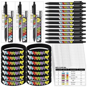 - Materiais seguros e inocentes: nossas canetas esferográficas e cartões são feitos de plástico; a pulseira é feita de borracha de silicone segura e inocente com leve elasticidade
