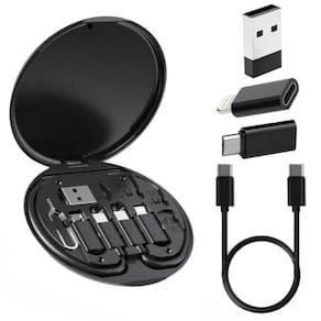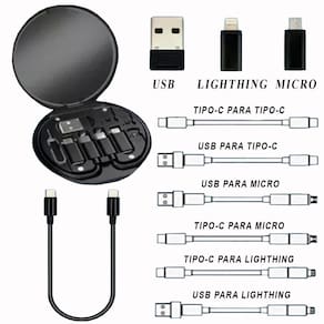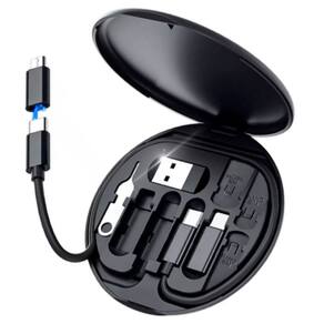 Adaptador multifuncional com 4 portas intercambiáveis, suporte de celular dobrável e caixa de armazenamento compacta.Acabamento do material