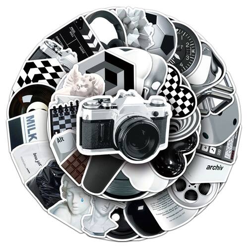 Conjunto de 50 peças: uma coleção exclusiva de 50 adesivos de desenhos animados minimalistas em preto e branco que adicionam um toque artístico aos seus pertences. Ampla aplicação: perfeita para decorar laptops, telefones, garrafas de água, malas, skates, interiores de automóveis, notebooks e muito mais. Material de vinil premium: feitos de vinil durável e à prova d'água, esses adesivos foram projetados para permanecerem intactos e vibrantes sem desbotar. Fácil de usar e remover: os adesivos são simples de aplicar e remover sem deixar nenhum resíduo pegajoso, permitindo uma fácil personalização. Designs modernos: apresenta designs modernos, artísticos e de desenho animado em preto e branco, perfeitos para quem busca uma estética minimalista ou ousada.