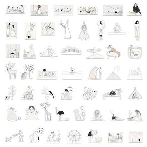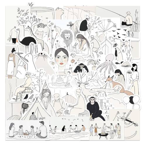 Material: papel e vinil Peso: 30-60 g Tamanho: 3-6 cm Quantidade: 50 unidades/PCS Adesivos de doodle exclusivos em preto e branco com arte minimalista, personagens fofinhos e ilustrações divertidas com uma estética criativa e moderna Feito de material de vinil impermeável de alta qualidade, perfeito para decorar capas de telefone, garrafas de água, álbuns de recortes e diários Ideal para quem gosta de designs simples, mas atraentes, com um toque de originalidade e criatividade para seus acessórios Fácil de aplicar e remover sem deixar resíduos, ótimo para personalizar itens ou criar bricolage personalizado projetos Perfeitos para quem quer adicionar um toque artístico e minimalista aos seus pertences com designs divertidos e divertidos