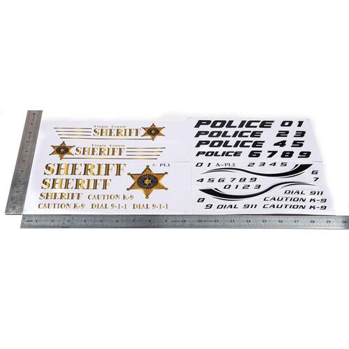- Conjunto de adesivos: o decalque de caminhão RC estilo Police Sheriff serve para a maioria das escalas 1/10 1/8. Consulte as medidas nas imagens do anúncio para determinar se elas cabem no seu modelo. Ele vem com mais adesivos do que você precisa em um corpo RC, para que você tenha opções suficientes sobre o que aplicar no corpo. Os elementos do decalque vêm em tamanhos diferentes, então pelo menos alguns decalques podem ser aplicados ao seu modelo.