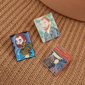 Material: Liga Tamanho: 2,5 x 3,4 cm Peso: 23 g Quantidade: você receberá todas as peças em quantidade igual à primeira foto principal Design inspirado em Showart — apresenta broches esmaltados inspirados em pinturas icônicas, combinando motivos de retratos e girassol com cores fortes e linhas expressivas. Material de liga — Feito de liga durável com revestimento de esmalte liso, garantindo cores duradouras, resistência à ferrugem e um acabamento refinado. Acessórios de moda — Use como alfinetes de blusa, broche ou crachá de lapela para estilizar jaquetas, casacos, suéteres, chapéus ou mochilas. Confortáveis — O tamanho compacto (2,5 × 3,4 cm) e o peso leve (23 g) tornam esses alfinetes fáceis de usar diariamente, sem aumentar o volume. Para qualquer ocasião — Ótimos para amantes da arte, festas, desfiles de moda, exposições ou simplesmente para adicionar um toque exclusivo roupas casuais ou formais.