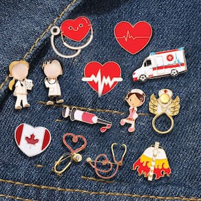 Material: liga Tamanho: 6,1 x 3,6 cm Peso: 100 g Quantidade: você receberá todas as peças em quantidade igual à primeira foto principal. Série ShowCreative Medical: inclui broches esmaltados com estetoscópio, ambulância, seringa, batimento cardíaco, desenhos de médicos e enfermeiras para uma aparência profissional divertida. Material de liga durável: feito de liga de qualidade com revestimento de esmalte liso, oferecendo cores brilhantes e desgaste duradouro sem desbotar. Leve e confortável: fácil de colocar em blusas, jaquetas, uniformes, cachecóis, mochilas ou chapéus sem adicionar peso extra. Perfeito para profissionais de saúde: ótimo para médicos, enfermeiros, estudantes de medicina ou qualquer pessoa da área da saúde para destacar sua profissão com estilo. Acessório moderno: funciona como alfinetes de blusa, broche de lapela ou crachá para trabalho, estudo, eventos temáticos ou uso casual diário.
