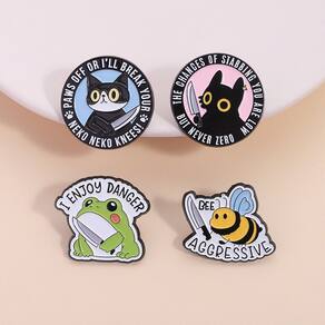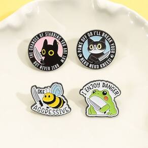 Material: liga Tamanho: 3 x 2,7 cm Peso: 21 g Quantidade: você receberá todas as peças em quantidade igual à primeira foto principal. Mostre o estilo criativo de desenho animado inclui desenhos de sapos, abelhas e gatos segurando facas com texto divertido, adicionando humor e personalidade ao seu uso diário. Material de liga durável Feito de liga resistente com acabamento esmaltado liso, resistente ao desbotamento, leve e durável para uso a longo prazo. Acessórios versáteis Perfeitos como alfinetes de blusa, crachás de lapela ou para decorar jaquetas, chapéus, mochilas e cachecóis para um look divertido. Declaração de moda unissex Adequada para mulheres, homens e adolescentes que gostam de estilos peculiares, engraçados e alternativos em roupas casuais ou de festa. Seguro e fácil de usar Cada broche possui um fecho forte na parte traseira, garantindo que permaneça firmemente preso e seja simples de colocar ou remover.