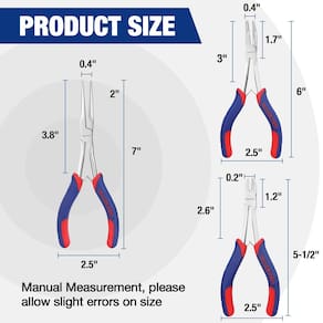 WORKPRO Conjunto de mini alicates de longo alcance com garras não serrilhadas, kit de ferramentas de alicate extra longo pequeno de 3 peças inclui alicate de ponta de agulha de 18 cm, alicate de ponta dobrada de 15 cm, alicate diagonal de 14 cm para espaços estreitos de difícil alcance - O que você recebe: nosso conjunto de mini alicates de nariz needele tem três tamanhos diferentes para sua escolha, incluindo um mini alicate de ponta de agulha de 18 cm, um mini alicate de nariz dobrado de 15 cm e um mini alicate diagonal de 14 cm. Este conjunto de alicates também vem com uma bolsa para armazenamento e transporte - Material de alta qualidade: o mini alicate de longo alcance é feito de aço de alto carbono que oferece maior durabilidade, e o revestimento adicional de níquel-ferro é resistente à corrosão e ferrugem. Eles são equipados com estilhaços de mola dupla, que mantêm o alicate aberto automaticamente, economizando mão de obra e facilitando o trabalho - Aderência ergonômica e confortável: nosso conjunto de alicates de ponta longa possui alças TPR bicolores com aderência ergonômica para uma excelente experiência de conforto, ajudando a reduzir a fadiga das mãos mesmo em trabalho prolongado. O design antiderrapante tornará o alicate mais fácil de usar - Design de longo alcance e garras lisas: o design de longo alcance combinado com o tamanho compacto torna o pequeno conjunto de alicates para melhor alcance em áreas confinadas. O design de alta alavancagem pode proporcionar máxima força de aderência com menos esforço. As garras não serrilhadas não arranham os itens - Ampla aplicação: um design de longo alcance estendido para melhor alcance em áreas confinadas. Eles são projetados para contornar obstruções. Este conjunto de mini alicates inclui vários alicates adequados para fazer pequenos projetos, como dobrar fios, fabricação de joias, manutenção industrial e manutenção elétrica e mecânica
