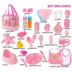 FASH N KOLOR Conjunto de alimentação para bonecas – Conjunto de 4 peças de cuidados com o bebê em bolsa de brinquedo para bonecas Este conjunto interativo de cuidados com o bebê é o melhor brinquedo de brincar de boneca que melhora a criatividade e a imaginação do seu filho, mantendo-o ocupado por horas. Com acessórios para bebês, como brinquedos de alimentação em uma bolsa adequada para crianças, projetada para impressionar e ajudar as habilidades cognitivas do seu filho, nosso conjunto de mamadeira é perfeito para o carrinho de bebê. Nosso conjunto de mamadeiras para cuidados com o bebê é um lindo presente de aniversário para seu filho, que pode desfrutar de mimos, passear e alimentar suas bonecas sempre que quiser. - Design interativo e colorido para crianças: nosso conjunto de cuidados com bonecas vem em uma bolsa de brinquedo transparente com zíper que é ideal para carregar bonecas, para que seu pequeno possa desfrutar de horas de brincadeira. Projetado com imagens fofas e coloridas para entreter as mentes jovens, este conjunto de bonecas de alimentação vai despertar a imaginação do seu filho - Vários acessórios para bonecas: design esportivo colorido, nosso conjunto de cuidados com bonecas tem acessórios para bonecas leves, laváveis e com aderência estável. O nível de fluido em cada mamadeira diminui suavemente à medida que é inclinada. O conjunto de brinquedos de alimentação infantil inclui acessórios de boneca como chupeta, incluindo duas mamadeiras de leite e suco - Qualidade suprema com durabilidade: projetado com gráficos complexos, este conjunto de cuidados de alimentação de bonecas para meninas é fácil de usar e manter em qualquer lugar da sala de jogos. Seus filhos agora podem desfrutar de sessões interativas de brincadeiras de faz de conta e impulsionar seu pensamento criativo. Os acessórios para bonecas podem ser facilmente enxaguados e armazenados em uma bolsa transparente para brincar - Fácil de limpar e transportar: nosso conjunto de brinquedos de alimentação de bonecas possui duas mamadeiras de leite e também garrafas de suco coloridas para melhorar as rodadas imaginativas de brincadeiras de faz-de-conta. Este conjunto de cuidados com o bebê é perfeito para meninas e suas bonecas, já que elas podem carregar a bolsa de brinquedo com elas em seus carrinhos de boneca enquanto vão para o parque ou para o berçário. - Presente ideal para meninas pequenas: se você está procurando a adição perfeita para melhorar as horas criativas do seu filho e melhorar as habilidades cognitivas, este conjunto de alimentação de bonecas foi construído para complementar brincadeiras de faz de conta para meninas. Sua criança pequena pode carregar a bolsa de cuidados com o bebê que pode ser aberta livremente em seu carrinho de bebê, que inclui garrafas de brinquedo para bonecas e uma chupeta de brinquedo.