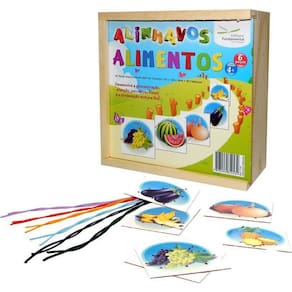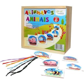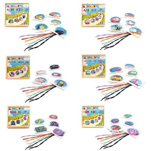 Conjunto de Alinhavos Caixa Com 06 Jogos Contém 6 conjuntos de alinhavos, sendo: vogais, comunicaçao, números, alimentos, transporte e animais Cada conjunto Contém 06 peças em MDF tamanho 15 x 15 x 0,3 cm + 06 cadarços coloridos em tecido CE-BRI/ICEPEX - N 00928-96 Ean: 7898496856644
