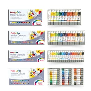 Pentel Arts Water Colors, cores diversas, pacote com 24 (WFRS-24) - Cores ricas se espalham e se misturam facilmente para criar tons dramáticos a sutis - Seca uniformemente, resiste ao desbotamento e não racha ou descama - O tubo de plástico é projetado para permitir que cada gota de tinta seja usada - Ótimo para usar em conjunto com pastéis a óleo e lápis de cor - Ideal para envidraçar sem ficar "lamacenta"