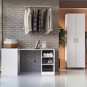 O kit perfeito para deixar sua lavanderia mais inteligente e funcional! O Conjunto de Armário Lavanderia 2 Portas com Mesa Dobrável Multimóveis MP5060 combina praticidade, organização e design moderno para facilitar o seu dia a dia.