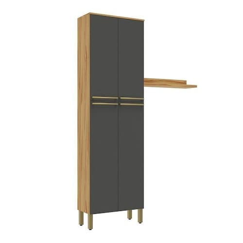 1x Paneleiro Duplo com 4 Portas 100% Mdf Itália Amêndoa/Cinza