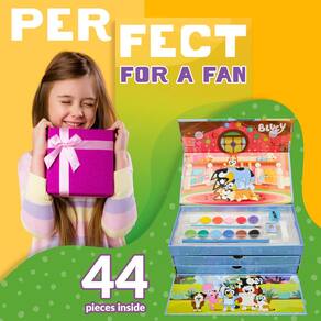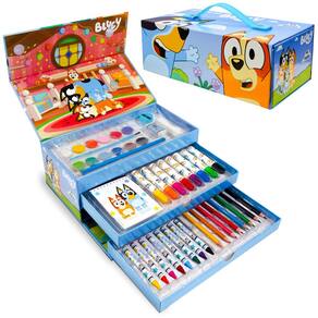 Seu filho pode liberar seu lado criativo com esses incríveis conjuntos de arte infantil, repletos de tudo o que precisa para desenhar, pintar ou colorir. Incentive a criatividade, esses conjuntos de cores infantis são perfeitos para desafiar e estimular a imaginação e a expressão, além de apresentar artes e ofícios desde tenra idade. Este conjunto de arte infantil não é apenas ótimo para manter os pequenos ocupados em casa, mas também é ideal para viagens devido ao conveniente estojo de arte com alça de transporte. Procurando presentes coloridos para crianças? Este conjunto de arte para crianças é um ótimo presente de Natal, aniversários ou ocasiões especiais, e certamente será um deleite para qualquer jovem fã de Bluey! - Mantenha os pequenos entretidos e liberte sua criatividade com este incrível conjunto de arte Bluey para crianças. Repleto de todos os materiais de arte necessários para oferecer horas de diversão e entretenimento criativos. Imprescindível para qualquer jovem fã de Bluey! - O conteúdo deste conjunto de colorir para crianças inclui: tintas em aquarela, marcadores coloridos, giz de cera, lápis de cor, tesoura de segurança, pincel e muito mais! Veja as imagens para obter detalhes completos sobre o que está incluído em cada conjunto - Procurando produtos Bluey para crianças? Este estojo de arte para crianças é oficialmente licenciado pela Bluey e inclui tudo o que é necessário para criar desenhos e pinturas e experimentar novas técnicas. Esses conjuntos de arte para crianças são ideais para aprendizado e desenvolvimento, pois fornecem todas as ferramentas para experimentar diferentes técnicas, cores e texturas. Tudo guardado ordenadamente em uma conveniente maleta de transporte com alça. Procurando presentes Bluey para meninas ou meninos? Este conjunto de arte infantil é um ótimo presente para Natal, aniversários ou ocasiões especiais e com certeza será um deleite para qualquer fã do Bluey!