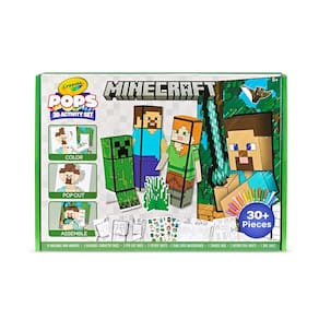 Crayola Minecraft, conjunto de arte infantil 3D POPs, alternativa para livros de colorir, presente para meninos e meninas, a partir de 6 anos - Atividade de coloração: possui 3 páginas para colorir POPs, 3 páginas Pop-Out Pops, 4 páginas de personagem/standee montáveis em 3D, 2 fundos em pé de dois lados, 3 folhas de adesivos, 1 folha de fita, 18 marcadores pipsqueak e folhas de instruções. - Kits de arte 3D POPS: deixe sua imaginação tomar forma colorindo e construindo obras de arte que saem da página. - Diversão para colorir MINECRAFT: Incentive os fãs de Minecraft a desfrutar de brincadeiras sem tela com este conjunto de colorir temático de Minecraft. - Ótimo presente para meninos e meninas: deixe as crianças animadas para criar, com uma atividade de coloração que se destaca do resto. Uma alternativa criativa aos brinquedos Minecraft, este conjunto de arte é o presente perfeito para fãs de Minecraft! - Seguro e não tóxico: artistas a partir de 6 anos podem usar esses materiais de arte não tóxicos.