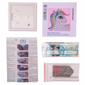 Conjunto de Artes Infantil - Dotzies - Unicórnio - Fun Divirta-se: o Conjunto de Artes Dotzies vem com tudo o que você precisa para completar uma obra inspirada em um Unicórnio. Dotzies é um jeito criativo de artesanato em que desenhos incríveis são criados com pedras adesivas inspiradas em diamantes. Um kit de Dotzies produzirá um efeito brilhante. Rápido e fácil de fazer, o resultado final é um design de pintura de diamante espetacular! Detalhes: • No melhor estilo “DIY” (Do It Yourself - Faça Você Mesmo), as crianças podem criar seus próprios conjuntos de artes com pedrinhas Dotz • As pedras de diamante são brilhantes e resistentes, garantindo que os desenhos fiquem bonitos e durem por muito tempo • O conjunto inclui tudo o que é necessário para começar a criar, incluindo um quadro pré-impresso, bandeja, pedras de diamante e caneta de aplicação • O kit contém: 01 peça de tecido impresso em cores de alta qualidade, tamanho 15 x 15 cm, 01 caneta Diamont Dotz Stylus, 01 bandeja, 01 pote de cera, 01 moldura e 01 pacote Diamond Dotz (8g) com 06 cores Como funciona: • Com a caneta de aplicação pegue um Dotz e coloque no espaço adesivado correspondente Informações: • Produto: Conjunto de Atividades Dotzies Unicórnio com 721 dotz • Marca: Fun Divirta-se • Coleção: Dotzies • Linha: Diamond Dotz • Tipo: Conjunto de Artes Infantil • Categoria: Artes e Atividades • Estilo de brincar: DIY (Faça você mesmo) • Nível: Iniciantes • Peças: 721 Dotz • Tamanho: - Tecido: 15 x 15 cm - Área do desenho: 9.5 x 9.5 cm • Conteúdo - 01 peça de tecido - 01 caneta de aplicação Diamond Dotz Stylus - 01 bandeja de artesanato - 01 pote de cera - 01 moldura - 01 Pacote de pedrinhas Diamond Dotz (8g) com 06 cores • Recomendação: para crianças a partir de 06 anos de idade Especificações: • Modelo: Diamond Dotz Unicórnio com 721 Dotz • Referência: F0153-2 • Código de Barras: 7908489408009 • Embalagem (C x A x L): 16.5 x 21 x 6.5 cm • Embalagem (Peso): 0.125 kg • Material / Composição: Plástico PP e Silicone • Registro: 02115-000 / OCP 0061 • Certificado: Órgãos Autorizados - OCP´S (Organismos de Certificação de Produtos) Aviso: • As imagens são meramente ilustrativas • Os pesos, tamanhos e medidas são aproximados • As cores e estampas dos produtos podem ter variações • As informações são de responsabilidade do fabricante ou fornecedor