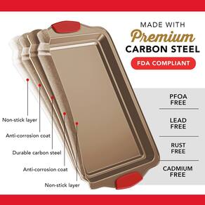 - Conjunto de utensílios antiaderentes: não há necessidade de papel manteiga com este conjunto de assadeiras antiaderentes. Feitas de aço carbono durável com revestimento antiaderente e resistente a arranhões, essas assadeiras para assar fazem o trabalho certo.