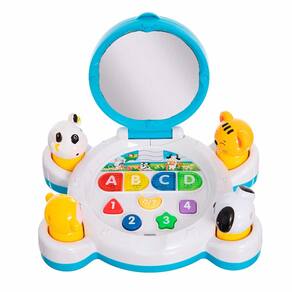 Conjunto de Atividades para Bebê - Festa dos Bichos - Guta Guti: Festa dos Bichos Baby é muito legal! Com diversas atividades para ajudar a criança a aprender as cores, números, letras, formas e animais. Com luz, som e joguinho Onde está?, para deixar a brincadeira ainda mais divertida!! Informações: • Produto: Festa dos Bichos • Marca: Guta Guti • Tipo: Brinquedo de atividades para bebês • Categoria: Brinquedos para Bebês • Subcategoria: Brinquedos Eletrônicos e Musicais • Tamanho: 19 x 14 x 07 cm • Conteúdo: 01 Festa dos Bichos Baby • Recomendação: para bebês a partir de 18 meses de idade Especificações: • Referência: DMB6913 • Código de Barras: 7899205969136 • Embalagem (C x A x L): 25 x 20.5 x 8.5 cm • Embalagem (Peso): 0.441 kg • Material / Composição: Plástico ABS • Alimentação: Utiliza 03 pilhas "AA" (não incluídas) • Registro: 003 135/2024 • Certificado: Órgãos Autorizados - OCP´S (Organismos de Certificação de Produtos) Aviso: • As imagens são meramente ilustrativas • Os pesos, tamanhos e medidas são aproximados • As cores e estampas dos produtos podem ter variações • As informações são de responsabilidade do fabricante ou fornecedor
