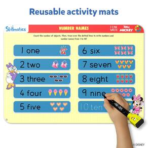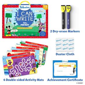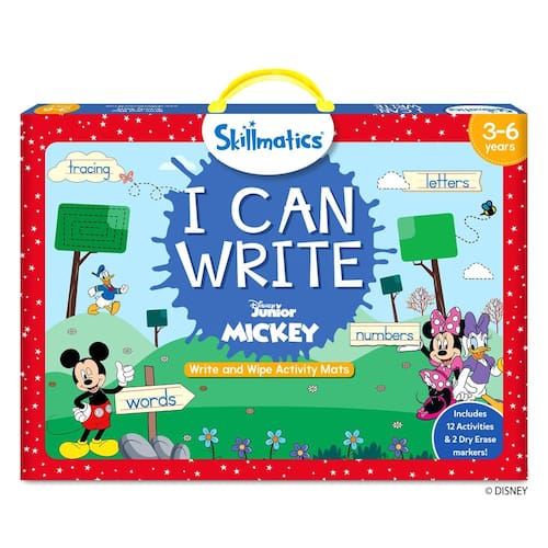 Skillmatics I Can Write Disney Junior Mickey Mouse oferece 12 atividades de escrita repetíveis que avançam em dificuldade, convidando as crianças a explorar o mundo mágico do Mickey Mouse da Disney e outros personagens adorados como Minnie Mouse, Pato Donald, Pateta e mais! - Tapetes de atividades reutilizáveis do Mouse Mickey da Disney: I Can Write oferece 12 atividades de escrita repetíveis que avançam em dificuldade, convidando as crianças a explorar o mundo mágico do Mickey Mouse e seus amigos Minnie Mouse, Pato Donald, Pateta e muito mais! - Inclui: 6 tapetes de atividade frente e verso, 2 marcadores apagáveis a seco, 1 pano de espanador e um certificado de conquista. - Fácil de usar: cada tapete apresenta o mundo colorido do Mickey Mouse da Disney com atividades de aprendizagem em ambos os lados. As crianças podem desenvolver suas habilidades de escrita traçando palavras, letras e números com os marcadores apagáveis a seco incluídos. - Aprenda através da brincadeira: Projetado para repetição, estes tapetes são limpos facilmente, permitindo que as crianças pratiquem suas novas habilidades repetidamente, oferecendo horas de brincadeiras sem tela. - Principais resultados de aprendizagem: padrões e traços, alfabeto e números, traçado, cores, desenho de simetria, reconhecimento de letras e objetos. - Divertido e educativo: desenvolvido por educadores e especialistas em brincadeiras, cada tapete inclui atividades adequadas à idade e orientadas para as habilidades que tornam o aprendizado divertido. - Desenvolva as principais habilidades: esta atividade definida pela Skillmatics melhora o pensamento criativo, a escrita, o foco, a atenção, a resolução de problemas, a leitura e a compreensão. - O melhor presente de todos os tempos! : Ideal para crianças de 3 a 6 anos que adoram personagens da Disney como Mickey Mouse, Minnie Mouse, Pato Donald, Pateta e muito mais! Este conjunto versátil é perfeito para qualquer ocasião, seja um feriado, Natal, aniversário ou encontro!